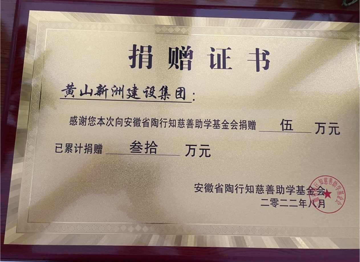黃山新洲建設集團有限公司董事長李文武作為基金會發(fā)起人之一,多年來一直“助學圓夢·情暖學子”,公司資助貧困大學生是緊緊圍繞政府工作中心、服務大局,讓更多大學生能夠圓夢大學,使貧困學子能在逆境中追逐人生夢想。公司已累計向貧困學生捐款達30萬元。
